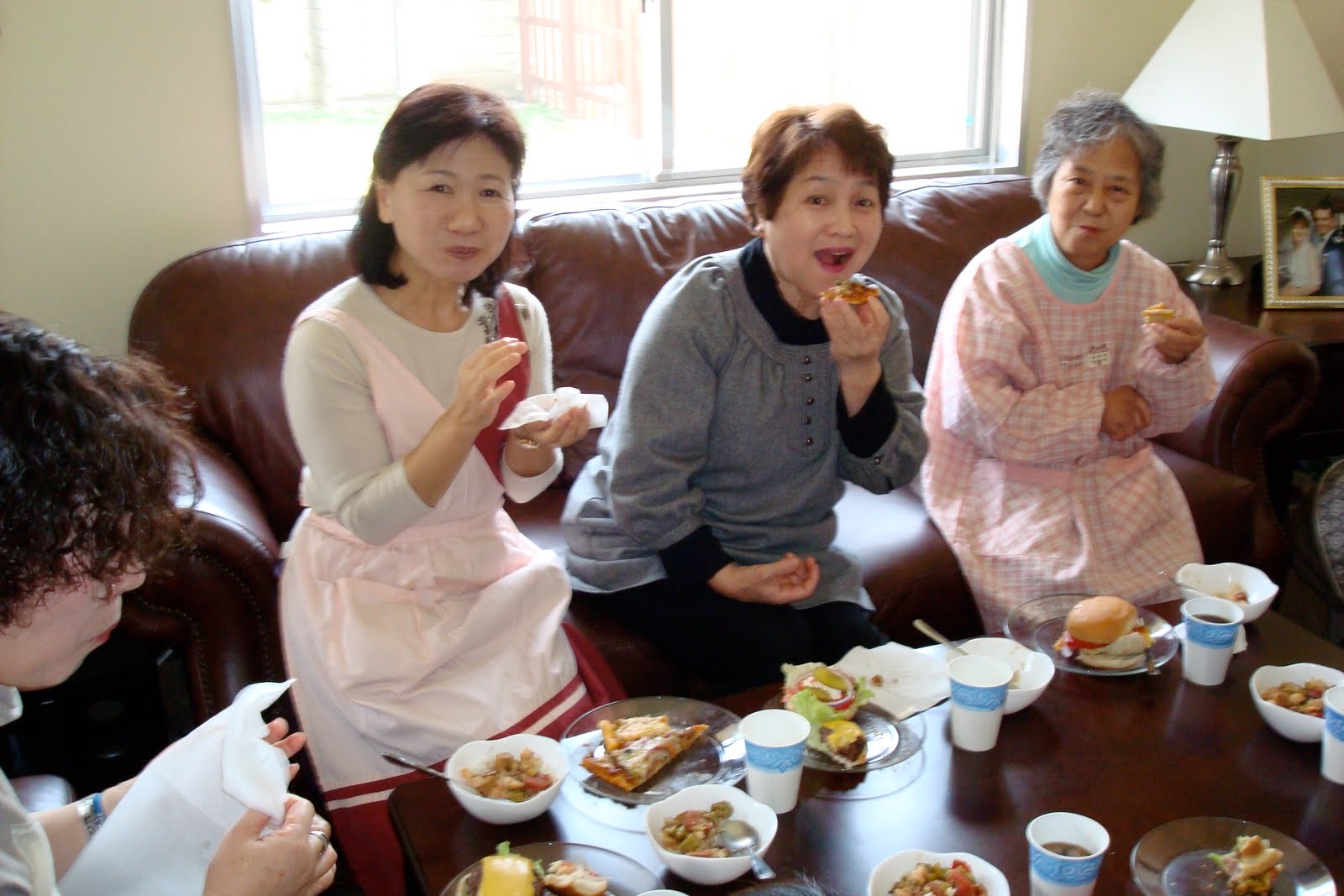 A few posts back I talked about how my culture group taught us how to make some yummy Japanese foods. We thought it would be fun to teach them how to make some American dishes. Kimiko had requested gumbo, and we also made pizza and cheeseburgers. So, we all gathered over at Kim Kincaid's house and also Suzie Nardozzi's house (they live 2 doors apart) and cooked and cooked and cooked.