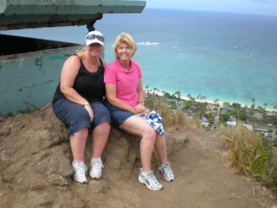 Mom and I drove over to a cute shopping center and had lunch at California Pizza Kitchen (yum- I miss that place here in Japan!) and then checked out some cute boutique stores, book stores, and a Macy's. I was on the hunt for a tankini-type bathing suit and Mom was just there to help me out. We had a great time, and I did buy a new suit and some fun sandals at Macy's. After that, we drove over to Lanikai beach, where the "rich" people of Hawaii live (not like there is much in the way of cheap property anywhere on the island, but this is most assuredly not a poor area!) We drove through the little tiny town (it's one loop around) and saw some huge houses. We stopped and walked down the public access pathways to the beach. It is very rocky towards the end, with not much sandy beach at all. (I noted this for one day when I'm rich and famous and can afford a house here. I'll make sure to buy at the other end of Lanikai that has some sandy shore).